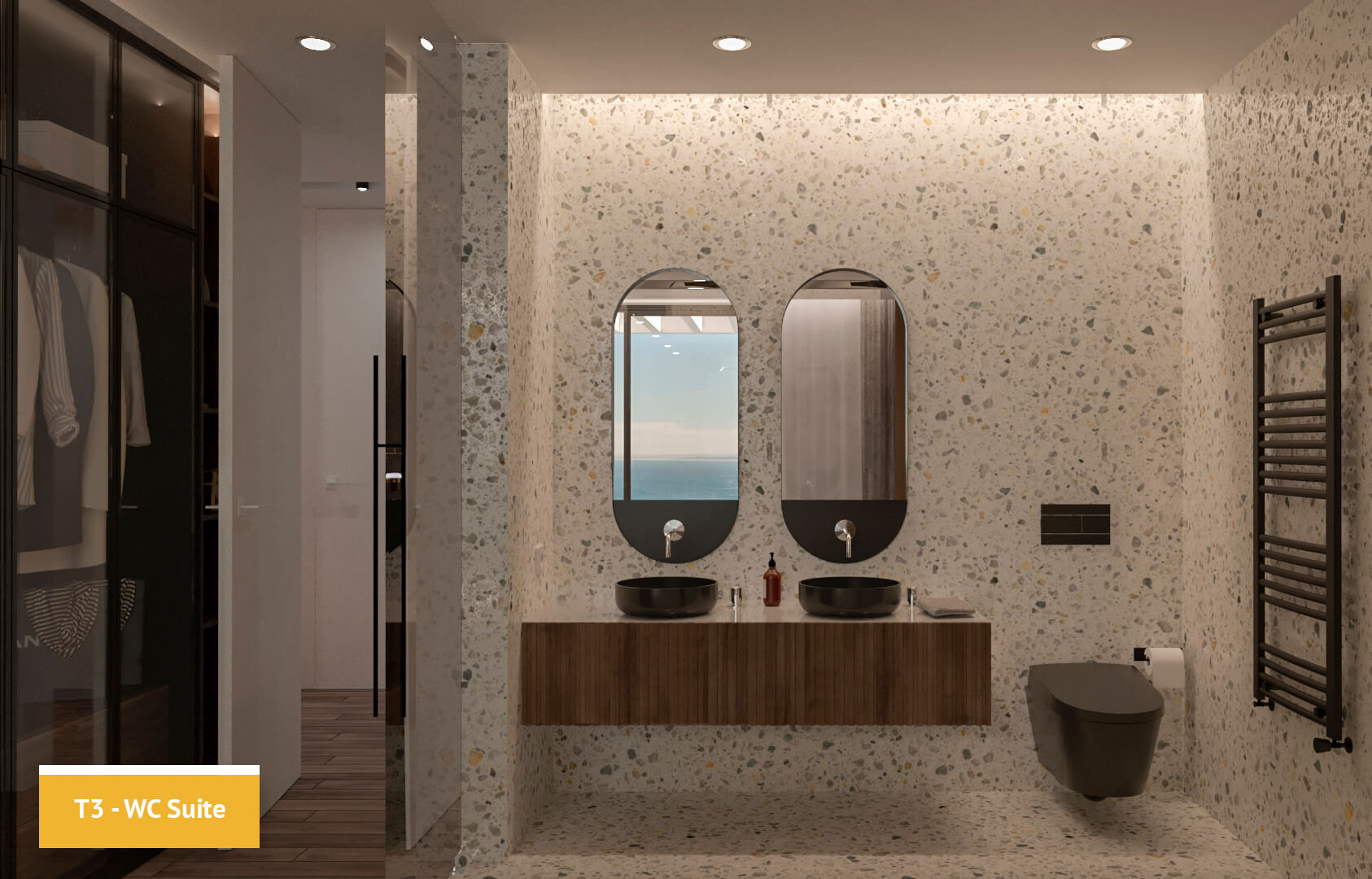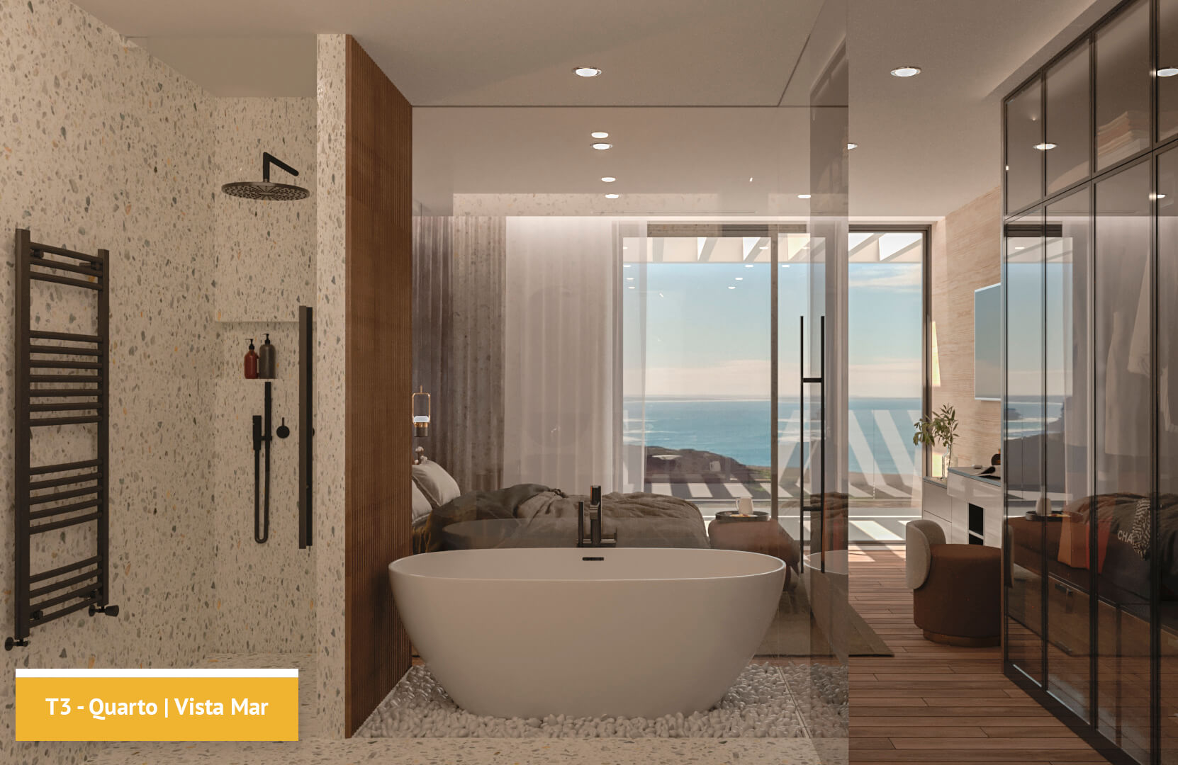 De momento estão dois imponentes T3 disponíveis com varanda e terraço com vista mar.